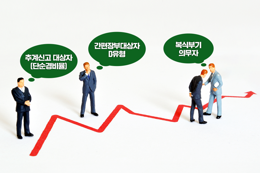 세금 절세 tip : 복식부기 의무자 유형도 D유형과 마찬가지로 증빙을 철저하게 챙겨 둬야 합니다. 증빙뿐만 아니라 부양가족 공제도 빠짐없이 체크하시길 바랍니다. 결혼이나 출산했다면 부양가족의 범위도 달라지겠죠? 가족관계증명서를 제출하면 세무 대리인이 누락없이 꼼꼼하게 파악해 줄 수 있습니다.