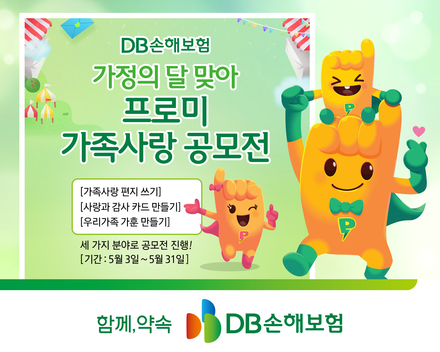 DB손해보험은 5월3일부터 31일까지 가정의 달을 맞아 ‘프로미 가족사랑 공모전’을 실시합니다.