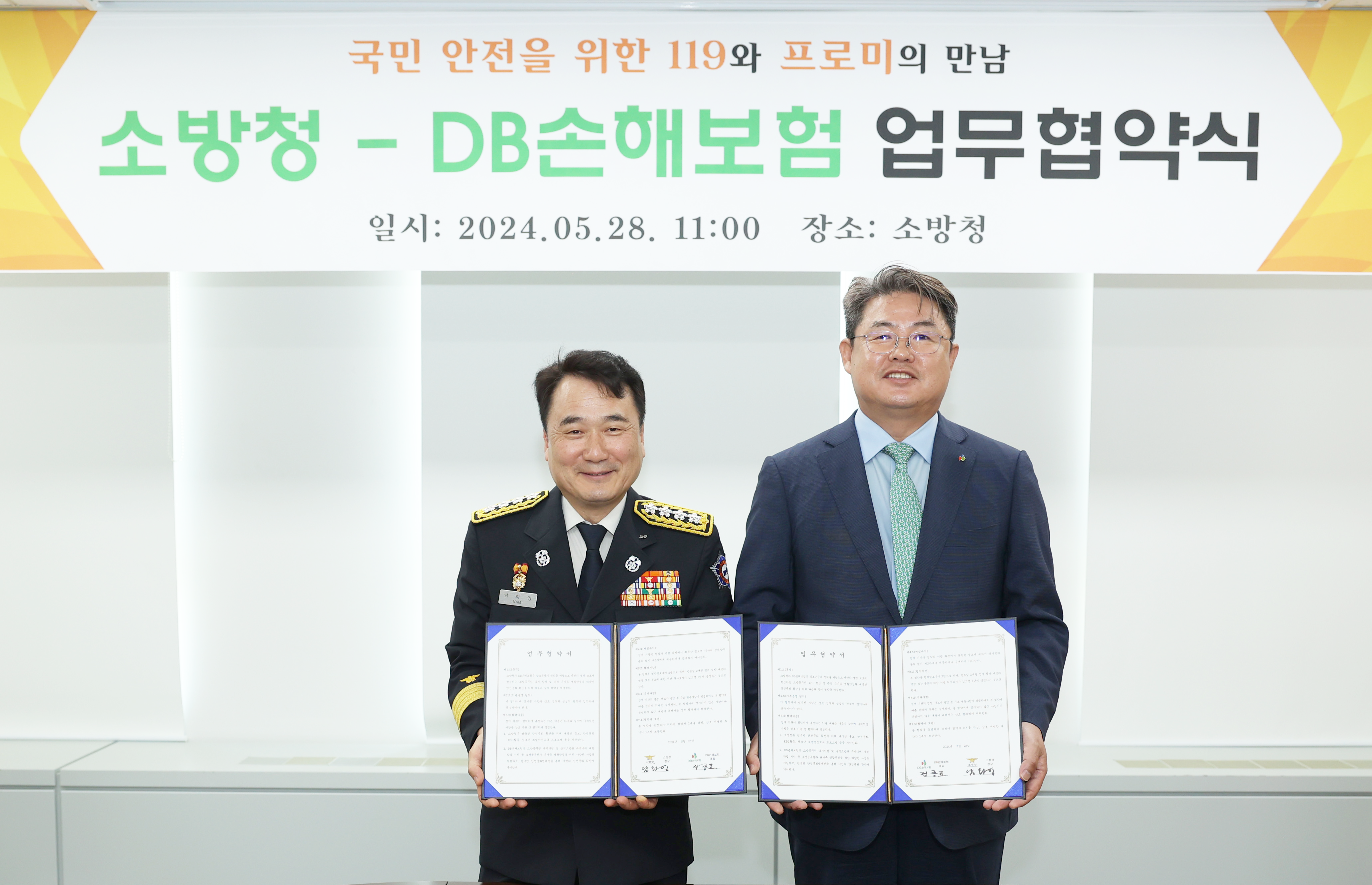 DB손해보험은 지난 28일 세종시에서 소방청(청장 남화영)과 함께 범국민 안전문화 캠페인을 추진하기 위한 업무 협약식을 가졌습니다.