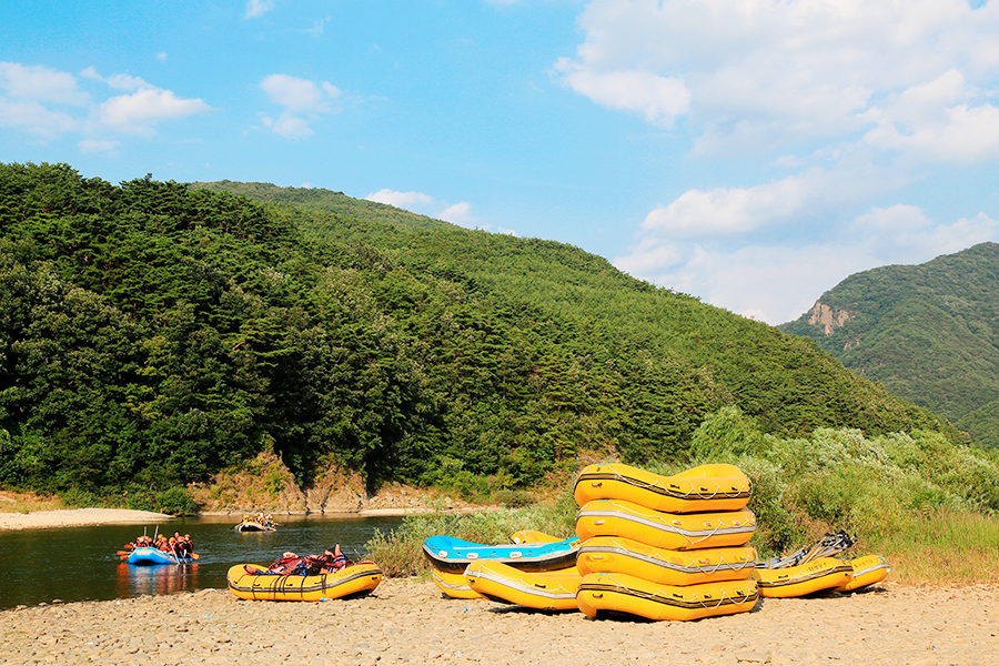 우선 연간 수십만 명이 방문할 정도로 래프팅 명소로 알려진 동강에서는 시원한 물살을 몸소 느낄 수 있습니다. 수량이 풍부하고 물줄기가 굽이치는 동강에서 온몸으로 스릴을 느낀다면 더할 나위 없이 즐거운 휴가를 보낼 수 있겠죠!