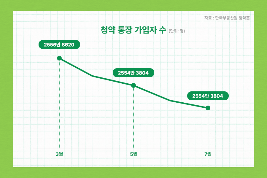 높은 청약 경쟁률을 뒤로 하고, 청약통장 가입자수는 점점 줄어들고 있다고 합니다. 또 올 7월 기준으로 1년 만에 약 35만명 정도가 청약통장을 해지하기도 했다는데요.