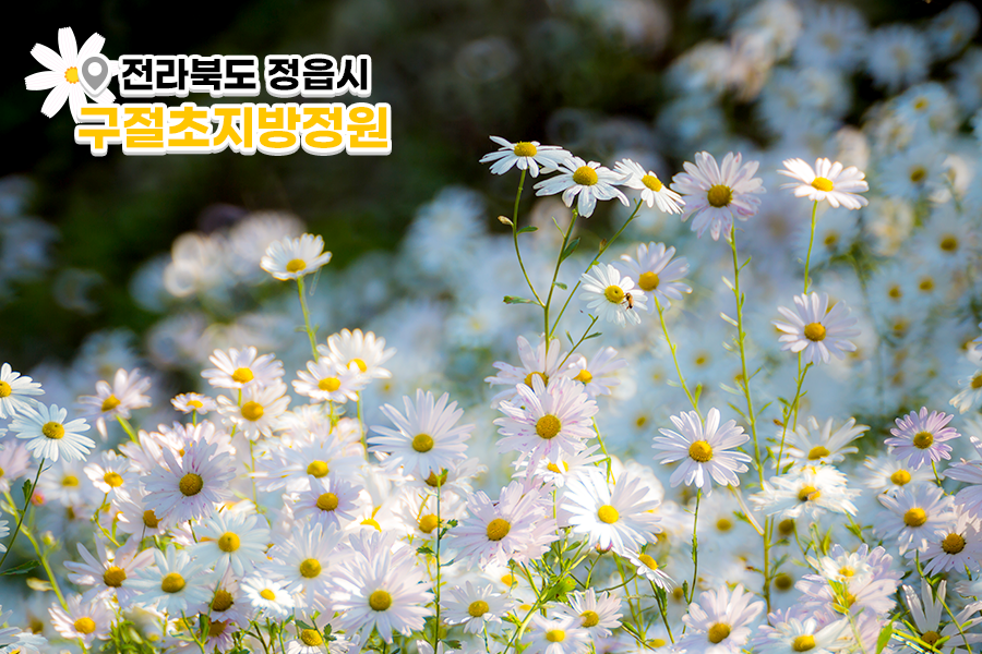 전북 정읍에 위치한 구절초지방정원은 ‘사진작가들이 뽑은 대한민국 최고의 출사 명소’라는 타이틀을 갖고 있습니다. 그만큼 사진찍기 좋은 포토스팟이 곳곳에 숨어 있는 아름다운 공간이지요.