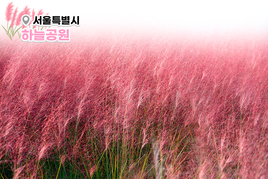 또 하늘공원은 억새 뿐만 아니라 가을꽃 ‘핑크뮬리’가 아름다운 곳인데요. 핑크뮬리가 만개한 하늘공원을 거닐다 보면 마치 동화 속에 들어 온 듯한 기분을 느낄 수 있답니다. 가을의 포근함을 닮은 억새와 가을의 아름다움을 닮은 핑크뮬리를 한 곳에서 볼 수 있는 것도 하늘공원만의 특별함이라고 할 수 있겠지요?