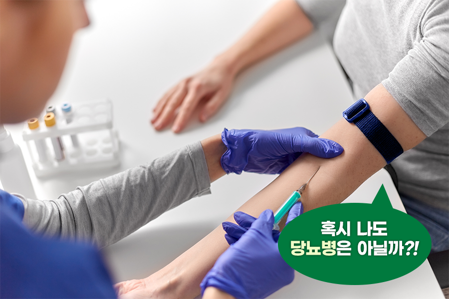 일반적으로 당뇨병은 혈당 검사를 통해 공복 혈당치 126 mg/dL 이상, 식후 2시간 혈당치 200 mg/dL 이상을 진단하고 있습니다. 더욱 정확히 진단하기 위해서는 혈액 검사를 진행하는데요. 지난 2~3개월의 혈당 평균을 알아보는 당화혈색소(HbA1c) 검사를 통해 수치가 6.5%이상인 경우 당뇨병으로 진단합니다.