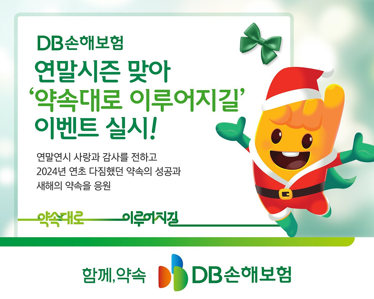 DB손해보험은 연말 시즌을 맞아 오는 12월 31일까지 ‘약속대로 이루어지길’ 이벤트를 진행합니다.