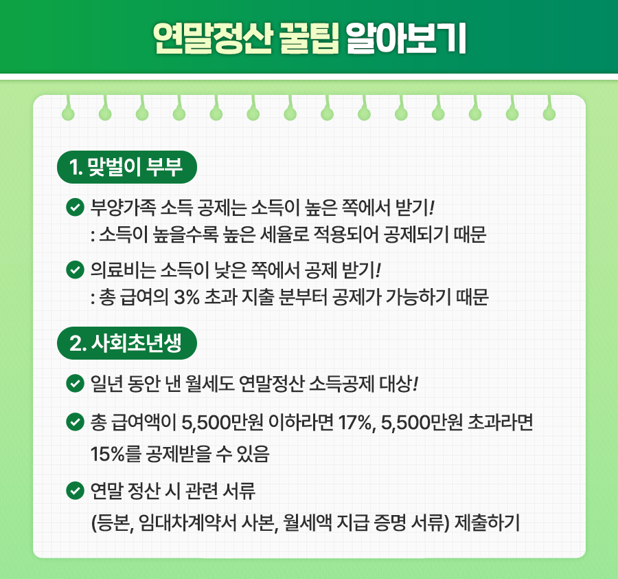 맞벌이 부부는 남편과 아내 모두 소득이 있기 때문에 연말정산 시 전략을 잘 세우는 것이 중요합니다.