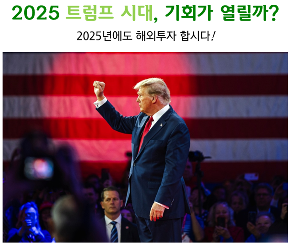 2025년은 어떨까요? 일단 구조적 흐름은 거스를 수 없을 것 같습니다. 성장이 있는 곳에 수익이 있다는 명제 때문입니다. 게다가 2025년 1월부터 시작될 트럼프 2기 집권은 미국을 중심으로 하는 해외투자에서의 기대효과를 높이고 있습니다.