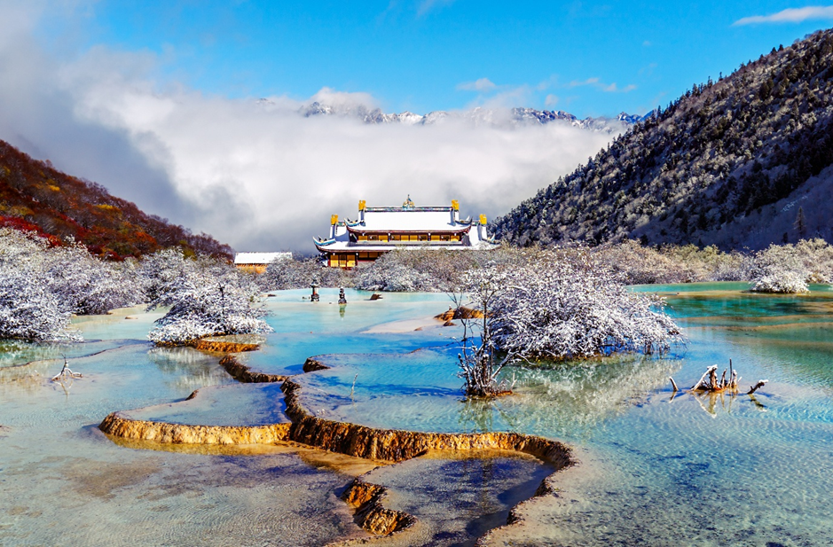 중국의 산을 보려면 ‘황산’을 가고, 중국의 물을 보려면 ‘황룡·구채구’’로 가라는 말이 있습니다. 중국 사천성 황룽(황룡 黄龍)의 에메랄드 빛 계단 연못은 하늘에서 내려온 용이 땅에 스며든 자취라는 말이 전해져 오고 있습니다. 황룽에 겨울이 오면 석회 연못은 수정계단이 되고, 얼어붙은 호수는 지상에 은하수를 펼친 듯 투명하게 빛납니다.