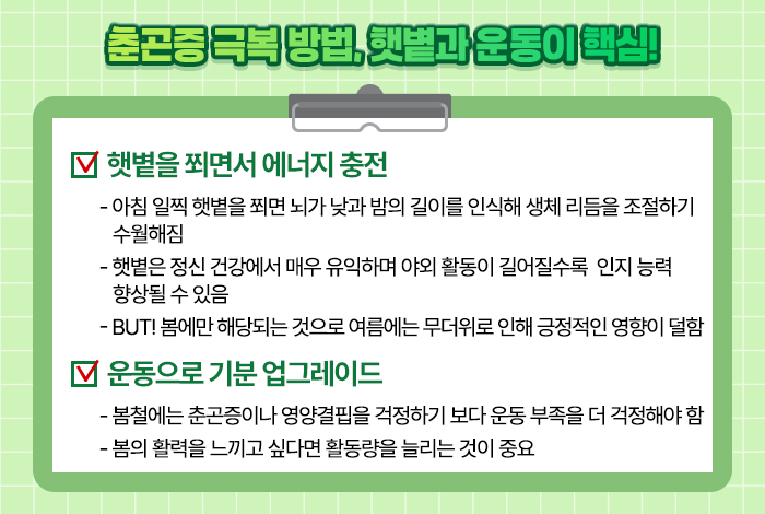 춘곤증, 햇볕과 운동이 답!