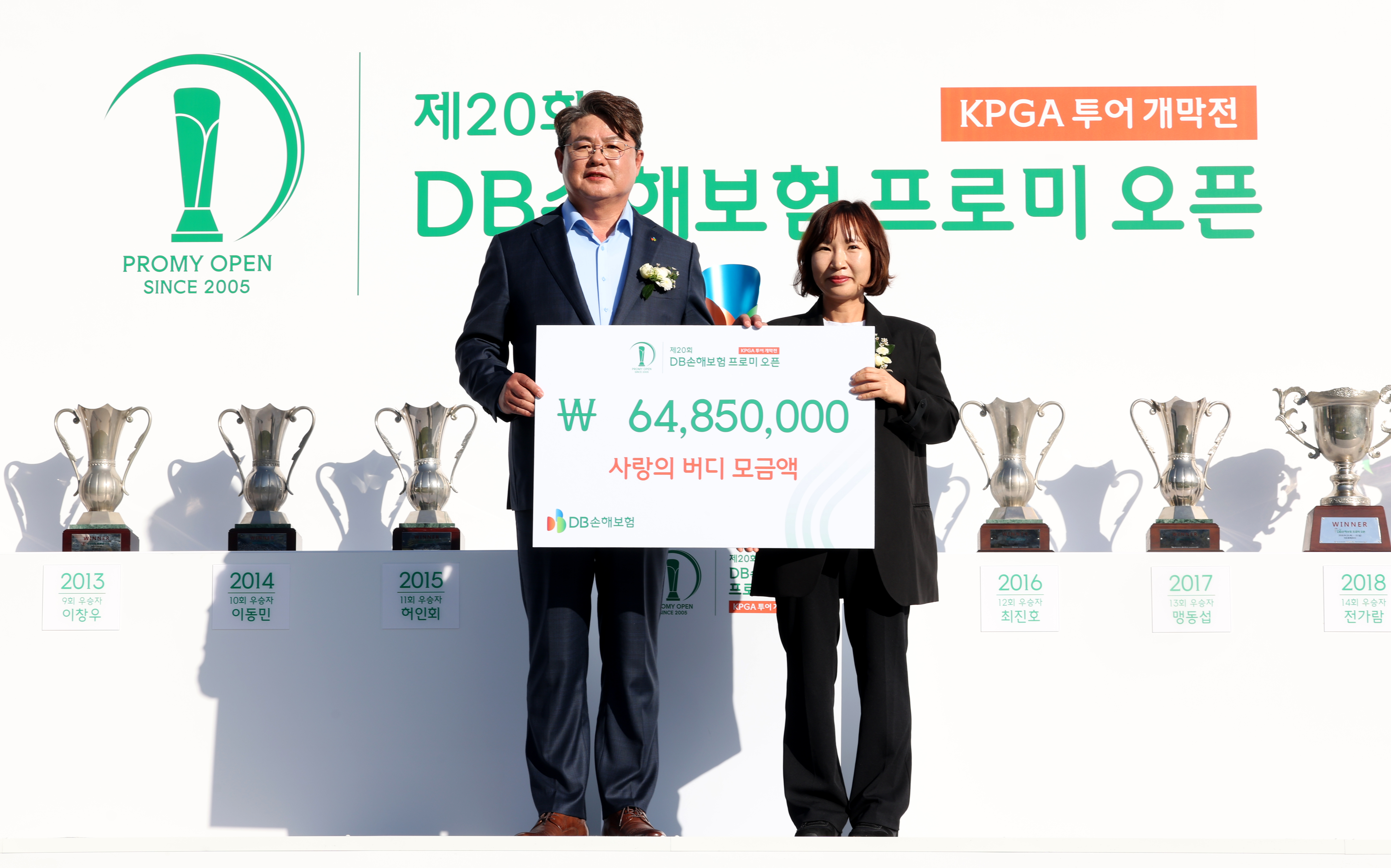 DB손해보험은 지난 20일 춘천 라비에벨CC에서 ‘DB손해보험 프로미 오픈 사랑의 버디’ 기부금 전달식을 가졌습니다.