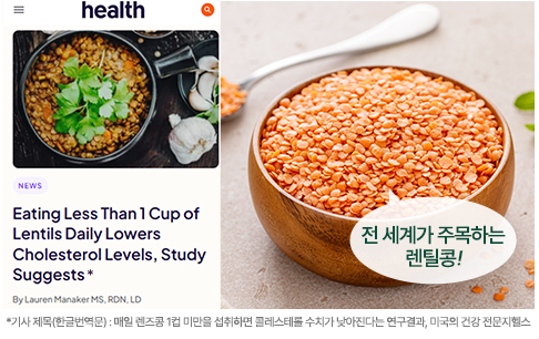 지난해 5월, 미국의 건강 전문지 ‘헬스(Health)’는 렌틸콩 섭취가 LDL(일명 나쁜 콜레스테롤)과 총 콜레스테롤, 식후 혈당 수치, 염증 수치를 유의미하게 낮춘다는 연구 결과를 소개했습니다.