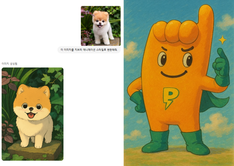 일상 속 풍경도 지브리 세계처럼 바꾸고, 반려동물이나 친구도 마치 애니메이션 주인공처럼 표현해보는 이 과정은 재미있고, 감성적이며, 나만의 세계관을 드러낼 수 있는 창작 놀이가 됩니다.
