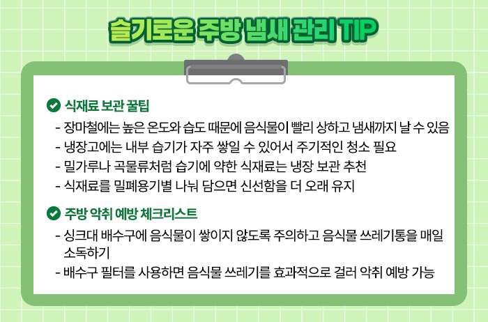 장마철엔 특히 주방에서 나는 냄새가 더 신경 쓰이기 마련입니다.