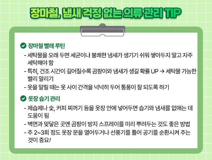 지금부터 꿉꿉한 장마철을 뽀송하게 보내는 유용한 팁들, 함께 살펴볼까요?