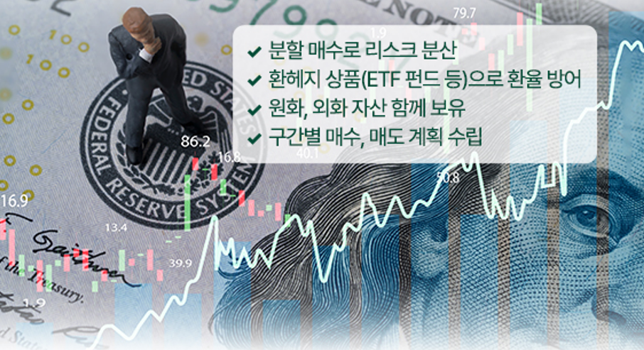 예를 들어 환율 방어 기능을 갖춘 ETF나 펀드 같은 ‘환헤지 상품’을 활용하거나, 원화 자산과 외화 자산을 함께 보유하는 식으로 분산 투자하는 것도 좋은 대응 전략입니다.