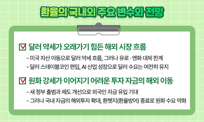 특히 2025년 5월에 ‘전략적 환헷지 전략’이 종료되면서, 원화 수요를 떠받치던 힘이 약해진 점도 주목할 부분입니다.