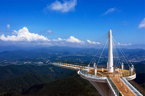 발왕산 스카이워크는 국내 최고 고도인 1,400m에서 탁 트인 전망을 즐길 수 있는 명소입니다.