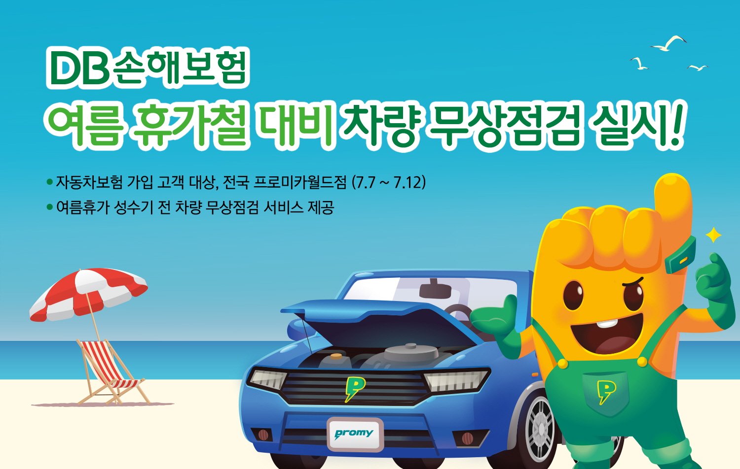 DB손해보험(대표 정종표)은 여름 휴가철과 장마철을 대비해 고객의 안전한 운행을 지원하고 사고 예방 활동을 강화하고자 오는 7월 7일부터 12일까지 차량 무상점검 서비스를 실시한다고 2일 밝혔다.