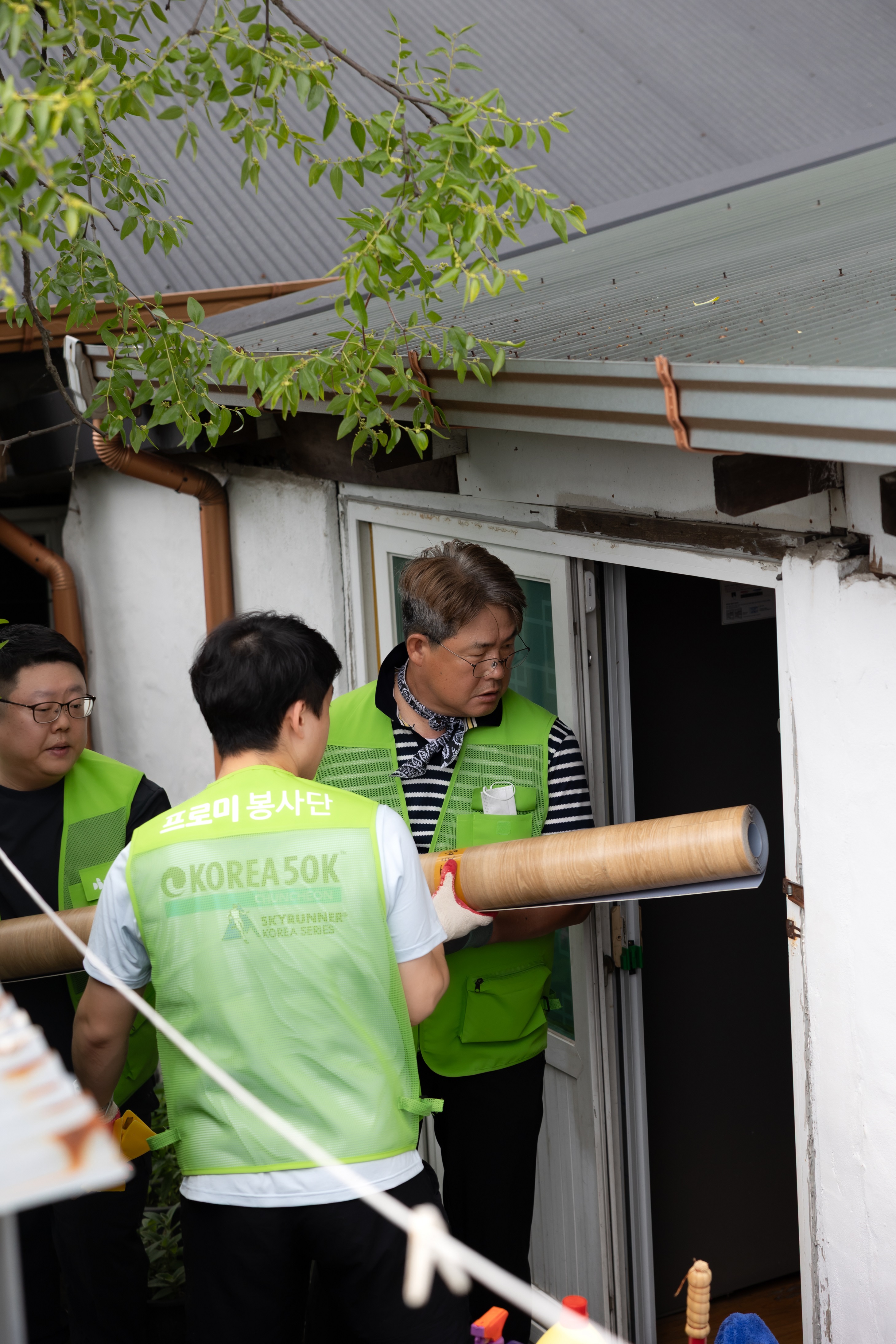 임직원과 DB프로미 농구단 등 120여 명이 참여하여 사단법인 ‘함께웃는세상’과 함께 원주시내 생활환경이 어려운 기초생계수급자 및 조손가족의 거주지를 찾아 도배지와 장판 교환, 생활개선 물품 지원 등의 주거환경 개선 봉사를 통해 지역사회에 따듯한 온정을 전달하였습니다.