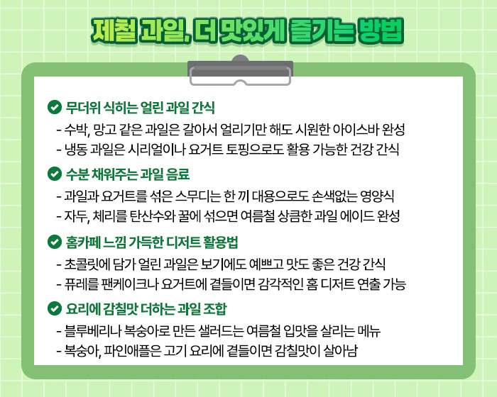 상큼한 과일 한입이 더위에 지친 몸과 마음에 작지만 확실한 활력을 선물해줄 거예요.