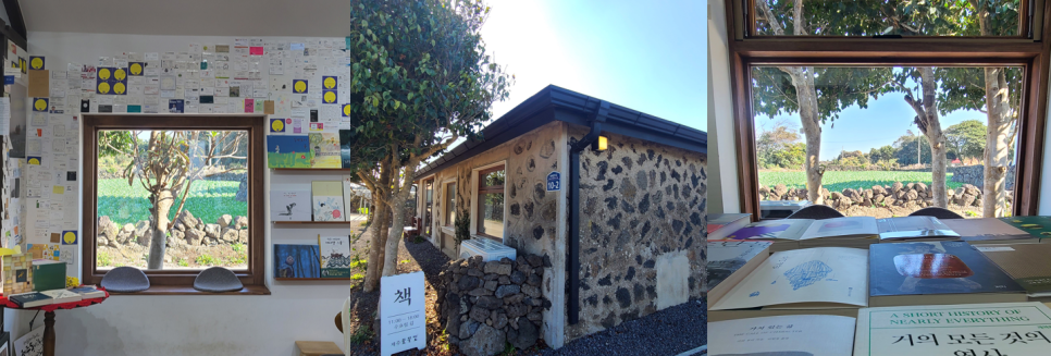 옛 제주의 돌집을 보존한 공간에 다양한 분야의 도서와 전시, 소품이 어우러져 있어 아늑한 분위기를 더해줍니다.