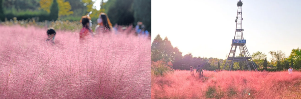 핑크뮬리는 가을에만 볼 수 있는 특별한 풍경입니다.