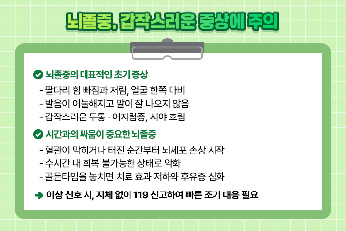 증상이 시작된 그 순간이 곧 생명을 지킬 수 있는 골든타임이 되는 이유입니다.