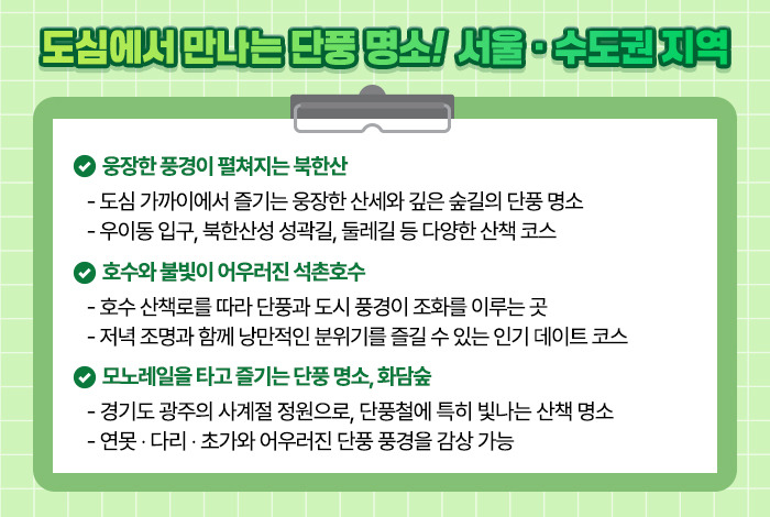 도시에서 즐기는 가을! 수도권 단풍 명소