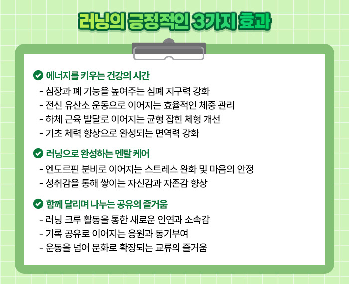 누구나 쉽게 도전할 수 있는 러닝이 일상에 활력과 즐거움을 더해 줄 거예요!