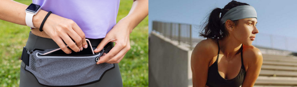 휴대폰, 열쇠 등을 넣을 수 있는 러닝 벨트는 필수에 가깝습니다.