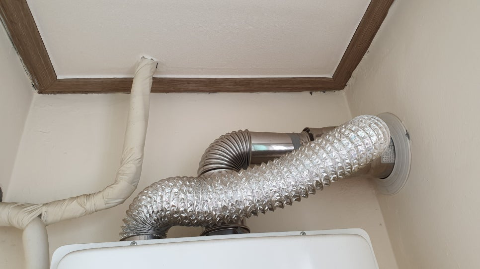 - 보일러 위쪽의 은색 배기 연통이 벽에 단단히 연결돼 있는지 확인합니다.