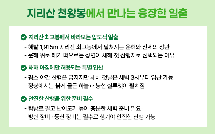 새해를 자연의 웅장함 속에서 시작하고 싶다면 천왕봉은 최고의 선택입니다.