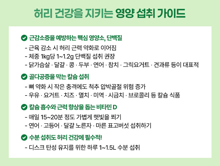 따라서 균형 있는 식단 선택 역시 허리 건강을 지키는 핵심 생활습관이죠.