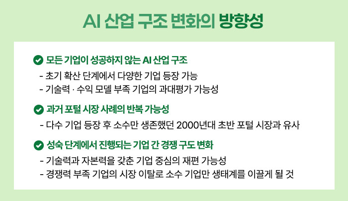 결국 AI 산업은 성장성과 위험 요인이 동시에 존재하는 만큼, 양쪽을 균형 있게 바라보는 관점이 필요합니다.