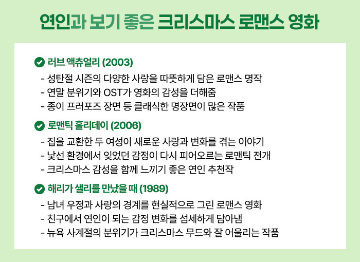 사랑하는 사람과 함께하는 크리스마스도 좋지만 영화 한 편이 더해지면 그 순간은 더욱 즐거워집니다.