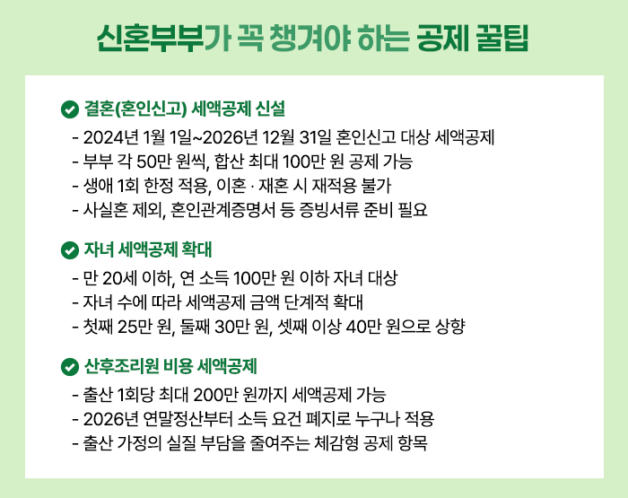 다만 해당 공제는 평생 1회에 한 해 적용되며, 혼인신고 이후 이혼이나 재혼을 하더라도 다시 받을 수는 없습니다.