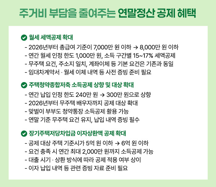 2026년 연말정산에서 달라진 공제 혜택을 중심으로, 꼭 확인해야 할 핵심만 정리했습니다.