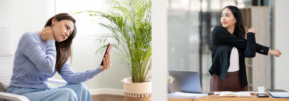 이런 자세가 반복되면 통증은 목과 어깨를 넘어 허리까지 이어지기 쉽습니다.