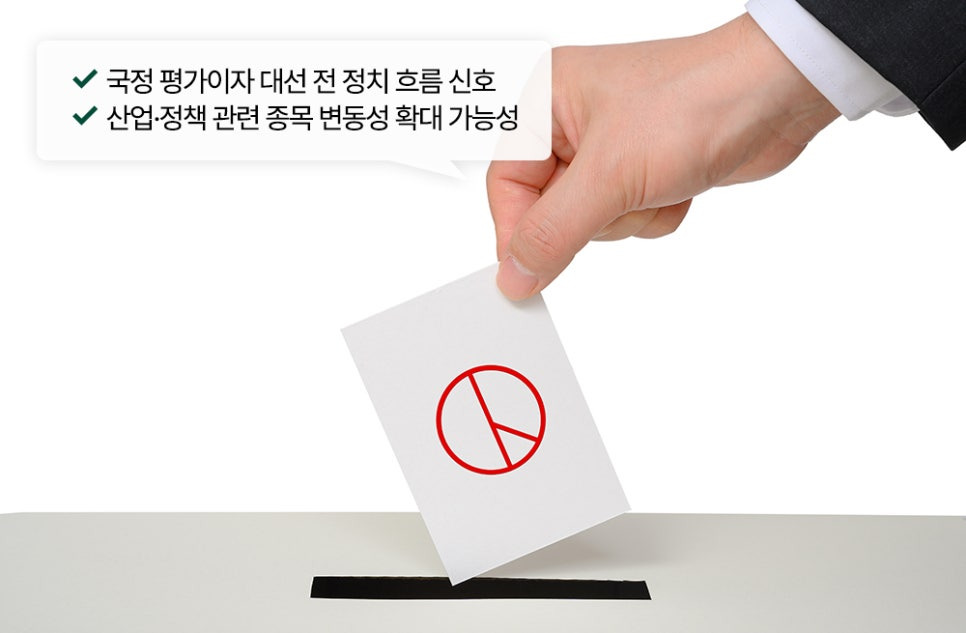 선거 과정에서 각 정당의 공약에 따라 특정 산업이나 정책 관련 종목의 변동성이 확대될 수 있습니다.