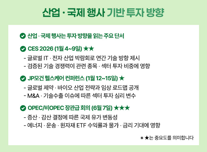 2026 투자 이벤트 캘린더가 시장 흐름을 이해하고 투자 전략의 기준을 세우는 데 하나의 출발점이 되기를 바랍니다.