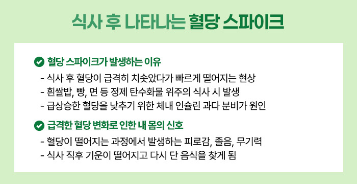 이처럼 식후에 몸 상태가 급격히 달라진다면 ‘혈당 스파이크’를 의심해 봐야 합니다.