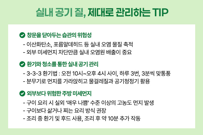 미세먼지가 많다고 해서 하루 종일 창문을 닫아두는 것은 오히려 건강에 더 해로울 수 있습니다.